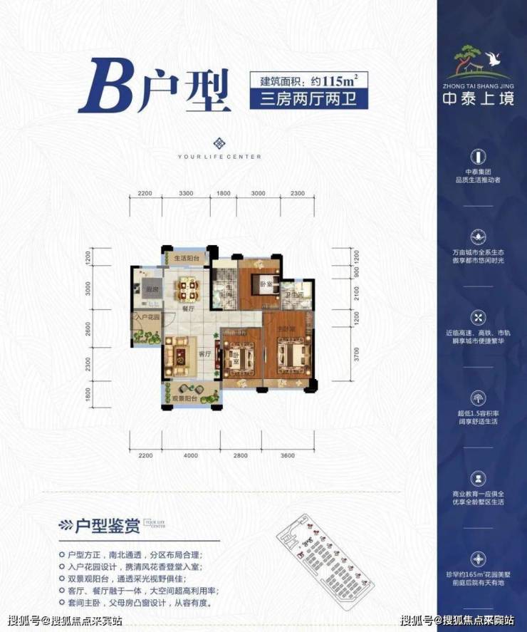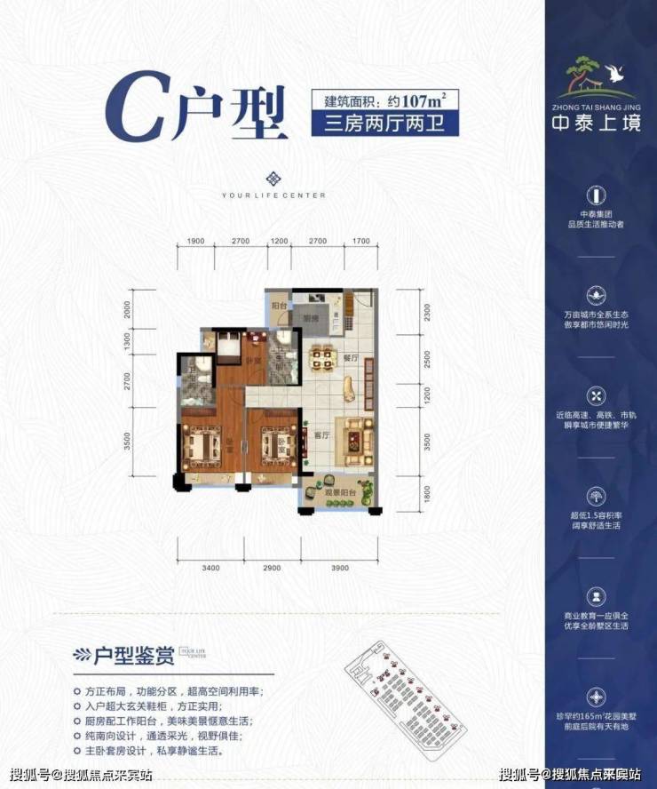 建筑面积约107㎡正南向实用三房,115㎡、135㎡户型自带南北双向大景观阳台及入户花园,超大视野,业主足不出户就能获得绝佳的观景视角,稳居C位。