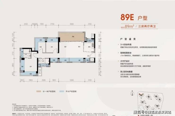从具体的户型设计来看,居所几乎被飘窗+阳台环绕,据悉赠送率最高可达27%。