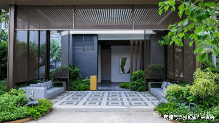 现代精奢风格打造项目景观大门;从开放景观前场→大面宽归家门堂→园林中心"森林会客花园"→风雨连廊→入户大堂,多重细节营造5重归家礼序,尊贵入户体验。
