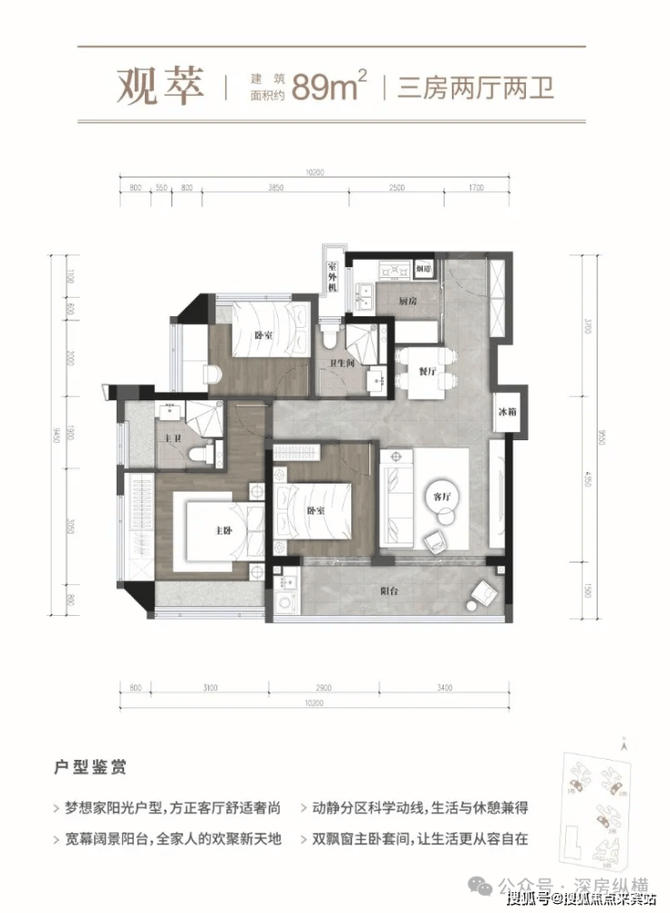 配置全屋中央空调;多面宽,大阳台等户型优势,精研购房人群的生活起居,打造光明优选产品,盛载全家人的生活向往。