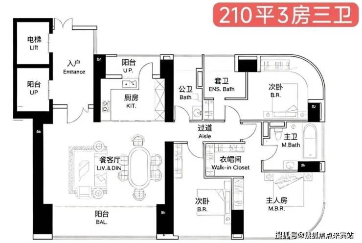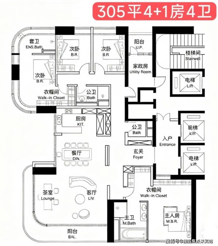 1栋B座:约375平方米户型(部分资料显示为350㎡),层高3.5米,总高180.17米,共47层,采用5梯2户设计。该户型空间阔绰,保障居住舒适度与私密感。