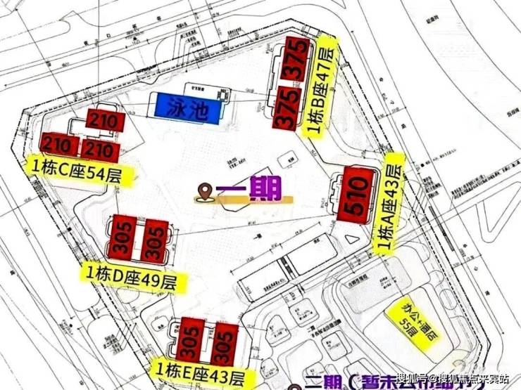 1栋A座:约510平方米户型(部分资料显示为495㎡),层高3.6米,总高165.77米,共43层,采用3梯1户设计。这是项目的顶级产品,整层仅一户,独享约510平方米的恢弘空间,私密性登峰造极。