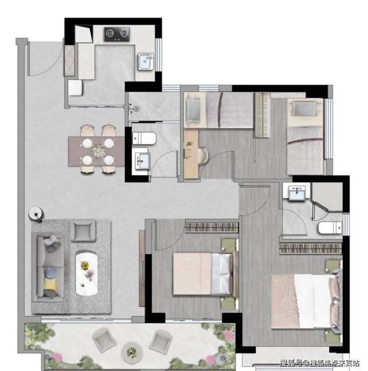【88㎡3房2厅1卫】高实用空间:动静分明 生活井然有序L型厨房:动线流畅 让烹饪更自在客餐厨直连:通透无界 全家欢愉的生活场双阳台设计:辽阔视野纳藏无限风光。