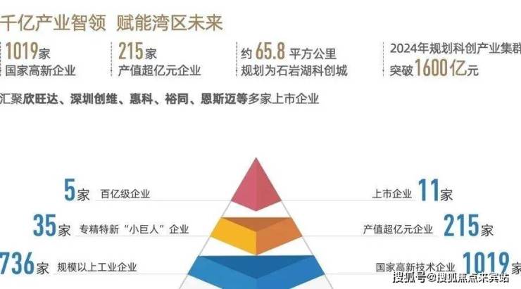 石岩科创城(规划面积65.8万平方公里)汇聚高端科技资源,驱动产业升级,形成产业集群效应,成为推动区域经济高质量发展的关键引擎。在2024年已汇集超过1019家国家高新技术企业,拥有215家产值超亿元企业,已汇聚欣旺达、深圳创维、惠科、裕同、恩斯迈等11家上市企业,规划科创产业集群突破1600亿元。