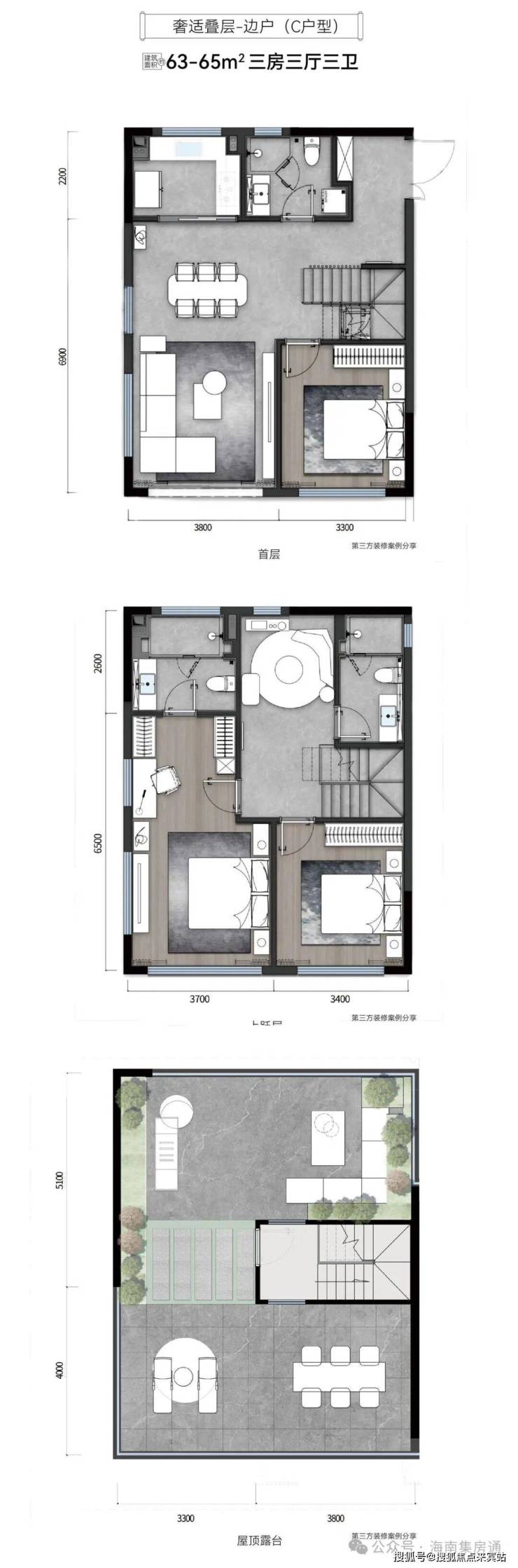 赠送情况:屋顶露台约100㎡,花园约150-230㎡