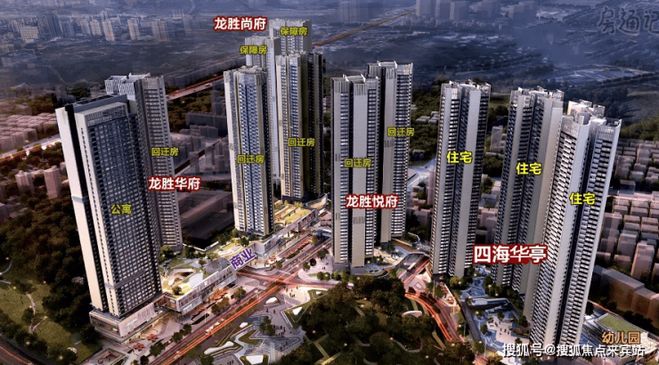 四海华亭,项目前身为“龙胜旧村城市更新单元”,共分5个地块建设,分别是龙胜华府,龙胜尚府,龙胜悦府,龙胜云坊,四海华亭,另外配建1所9年制学校,如今的龙华中学弘毅校区(龙胜学校),项目总占地面积约5.45万㎡,总建筑面积约56万㎡。