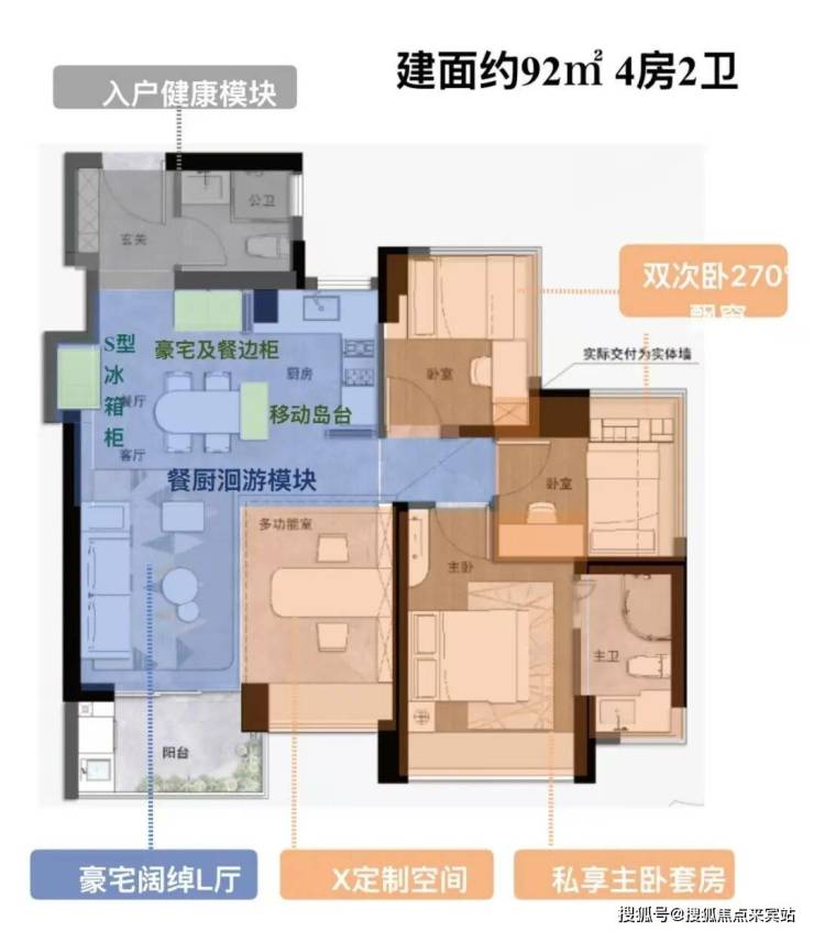 作为5栋新品的核心亮点,约92㎡极致四房堪称“全生命周期的空间折叠大师”——相比此前备受青睐的98㎡户型,面积减少6㎡,但功能丝毫不减,空间利用率更胜一筹,从独居、二人世界,到一胎家庭、三代同堂,甚至打造宠物乐园,都能完美承载,真正实现“小面积大作为”。