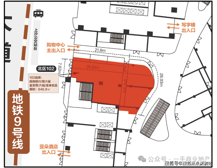 ♛ 商家品牌: 招商银行/金至尊/周六福/六福/宝莱名品♛ 铺号:北区102♛ 总建面:约646.9㎡♛ 面宽:外约7.62m|内约50.73m♛ 面价:总价约11159万元 单价约17.25万元♛ 物业状态:现铺带租约交付