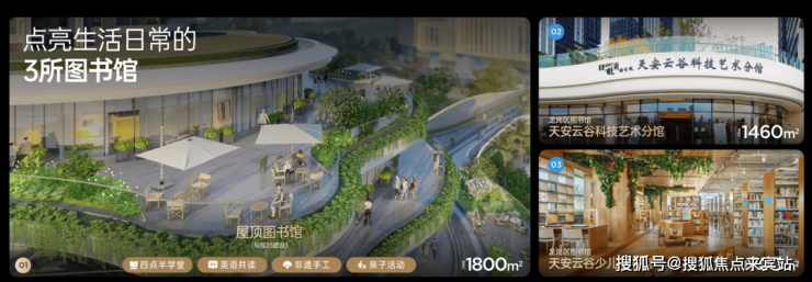 在此基础上,还打造了屋顶图书馆、天安云谷科技艺术分馆、天安云谷少儿图书馆3大图书空间,让孩子在课本之外,探索更广阔的知识世界;