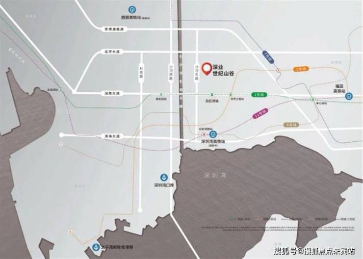 项目位于深湾创新走廊核心位置,沙河街道明珠街社区。四大总部基地环绕——往北是留仙洞总部基地、西丽湖国际科教城,往西是深圳湾高新区总部基地、后海总部基地,往南是深圳湾超级总部基地,往东是华侨城、福田CBD。白石洲550万㎡旧改正在推进,将建设400米国际超甲级写字楼群+40万㎡旗舰商业。