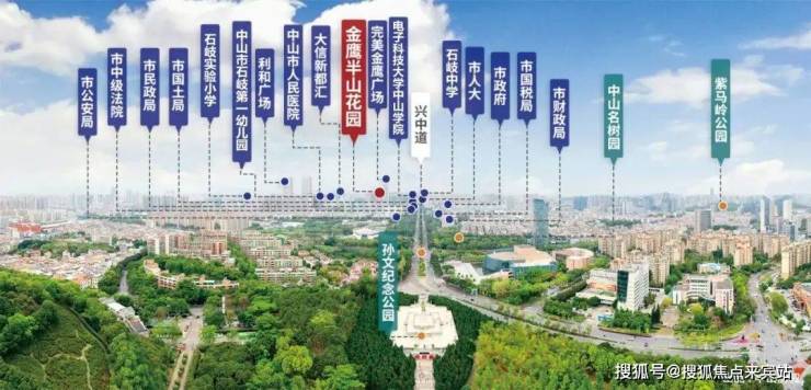 显赫的城市政治圈在此形成,市政府、市财务局、市国税局、市民政局等星罗棋布。教育上,其帷幄全龄段学区,让文化熏陶孩子点滴成长。中山市纪念图书馆、名树园、孙文纪念公园等配套更是在这条中轴上串联成珠。