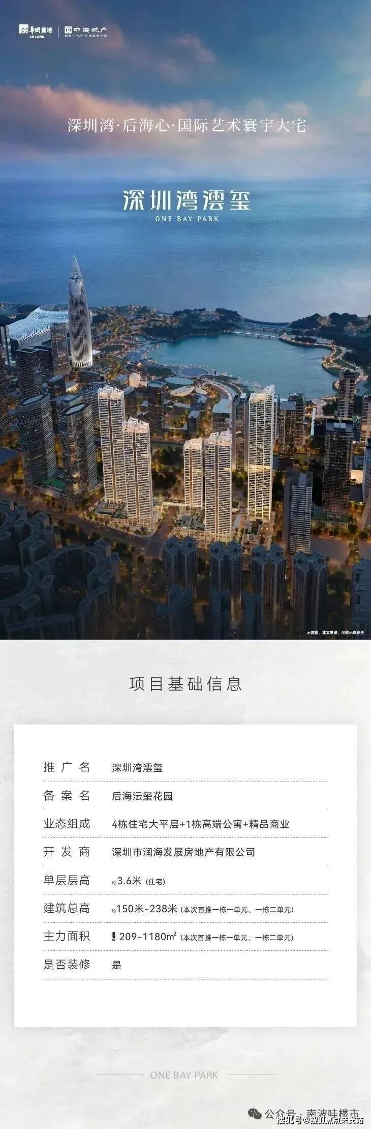 华润置地与中海地产两⼤世界500强巨擘,以超越时代的远见与实⼒,联袂执笔深圳湾,为全球⼈物敬献永恒的资产典藏——深圳湾澐玺。