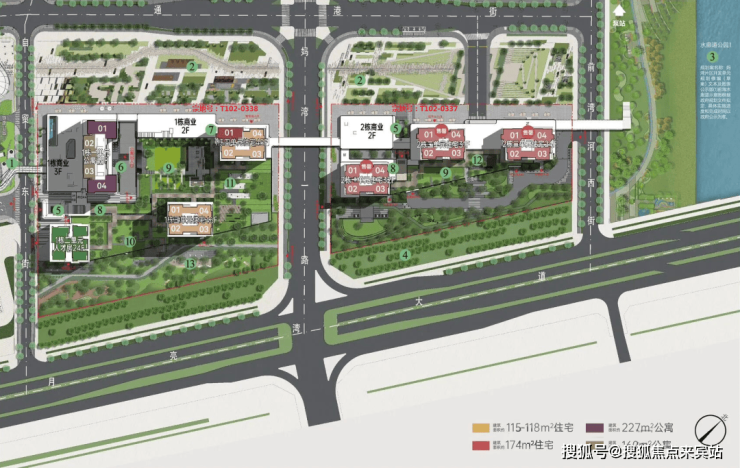 项目整体占地约3.34万㎡,总建面约18.12万㎡,分东西两个地块,由7栋建筑组成:5栋住宅、1栋公寓、1栋人才房。