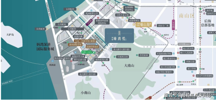 项目位置:深圳市南山区前海妈湾片区,临海大道与港城路交汇处东侧,距离地铁5号线铁路公园站约300-500米。