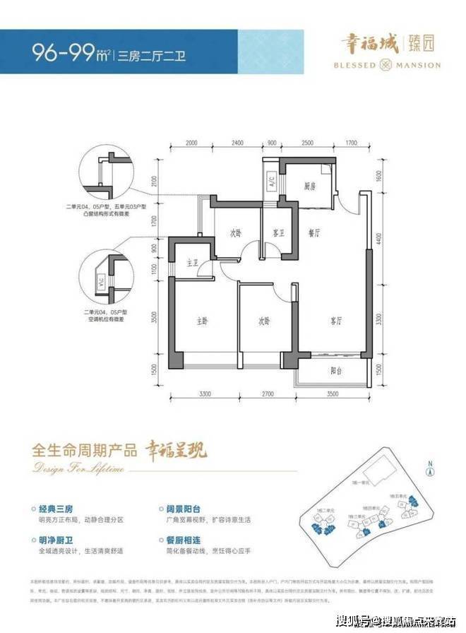 三房二厅二卫:96-99㎡: