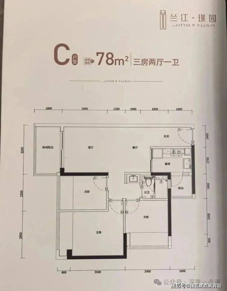 78m²的3房2厅1卫,设计的经典竖厅格局,进门入户玄关,客厅3.2米开间,LDKB一体化设计,三开间朝南,动静分区,分别做到了主卧12.43m²/次卧8.32m²/次卧6.76m²(实测面积,去掉墙体),L型厨房带1个小生活阳台2.56m²,卫生间三段式干湿分离,得房率78.8%(不含赠送),客厅阳台5.76平西南朝向,看谷仓府。套内面积61.38m²+飘窗6.56m²+阳台4.16m²=实际套内72.1m²,加上赠送面积后得房率约92%。