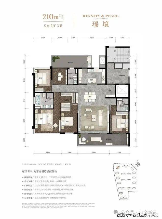 【瑧境】5室2厅3卫户型,建面约210㎡