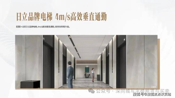 5+1台日立品牌电梯,4m/s高效垂直通勤!满足大规模人流同行,助力企业高效办公