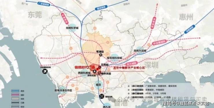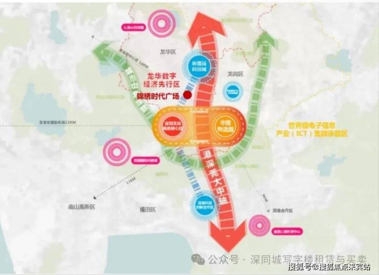 科创产业:北站商务核心区与坂田坂雪岗科技城双区交汇,集聚美团、深圳通、华为、富士康等龙头产业,形成超密集企业矩阵。