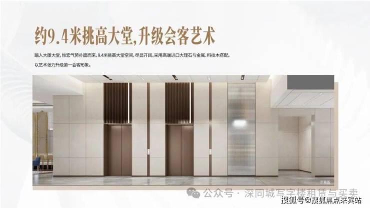 首层9.4米挑空大堂,以现代轻奢商务风格塑造高端、典雅的企业商务形象