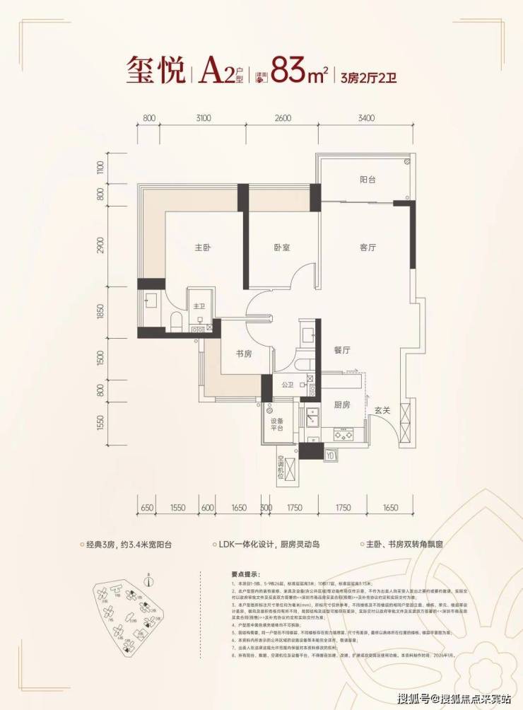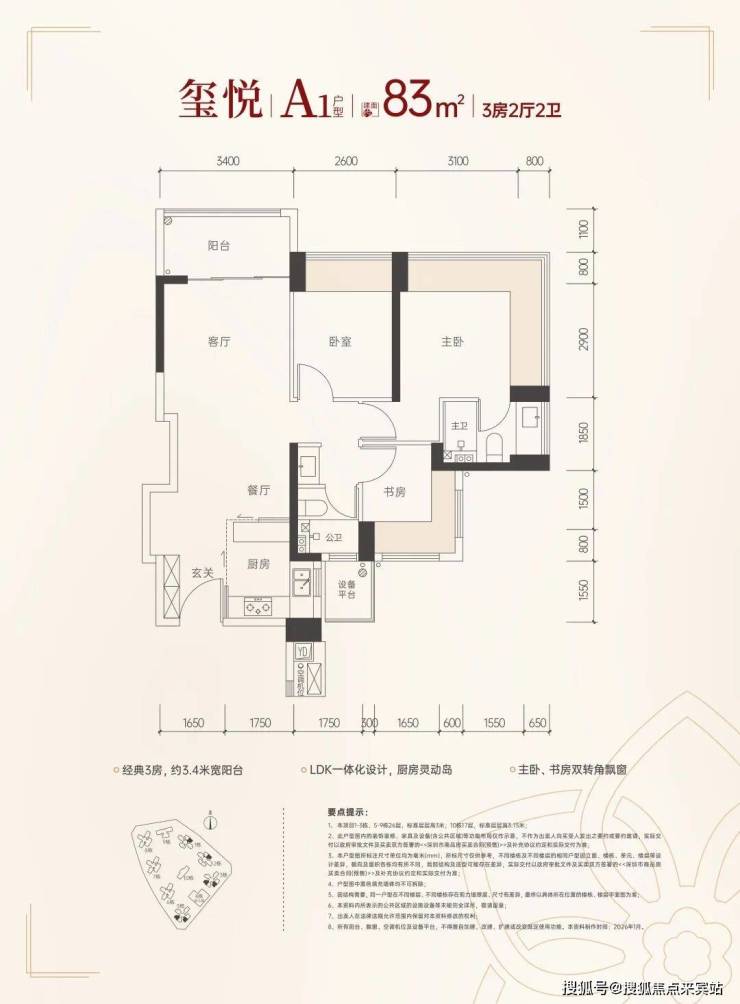 83㎡三房,参考总价310万起,单价3.73万起;