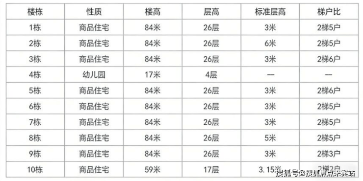 10栋标准层高3.15米,其它楼栋标准层高3米。