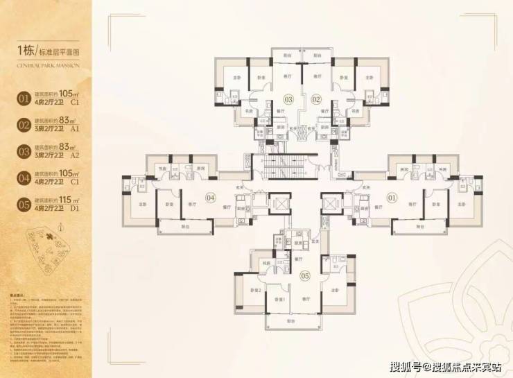 105㎡四房,参考总价410万起,单价3.9万起;