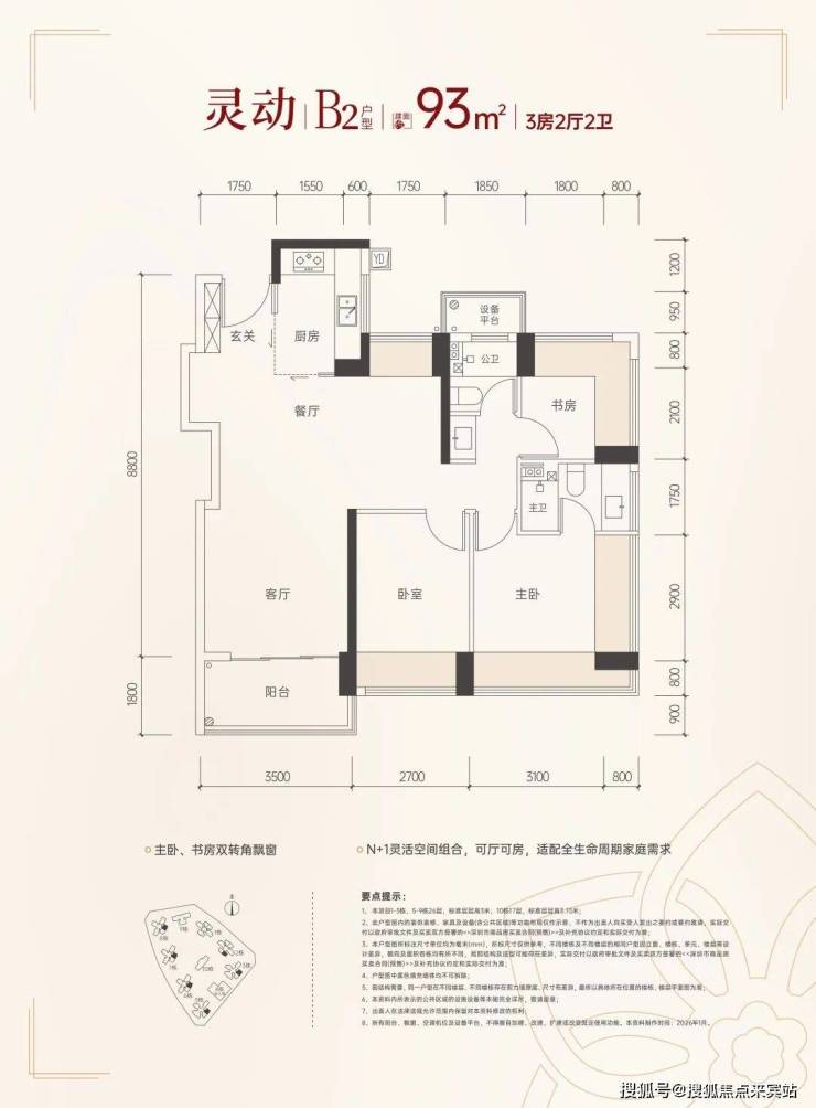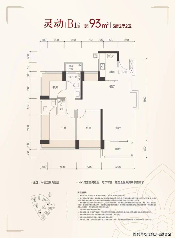 93㎡四房,参考总价360万起,单价3.87万起;
