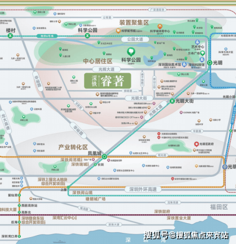 <交通>:距离地铁6号线光明站约1公里,2站换乘13号线(预计2026年初开通),4站直达光明城高铁站(可换乘广深港高铁)。