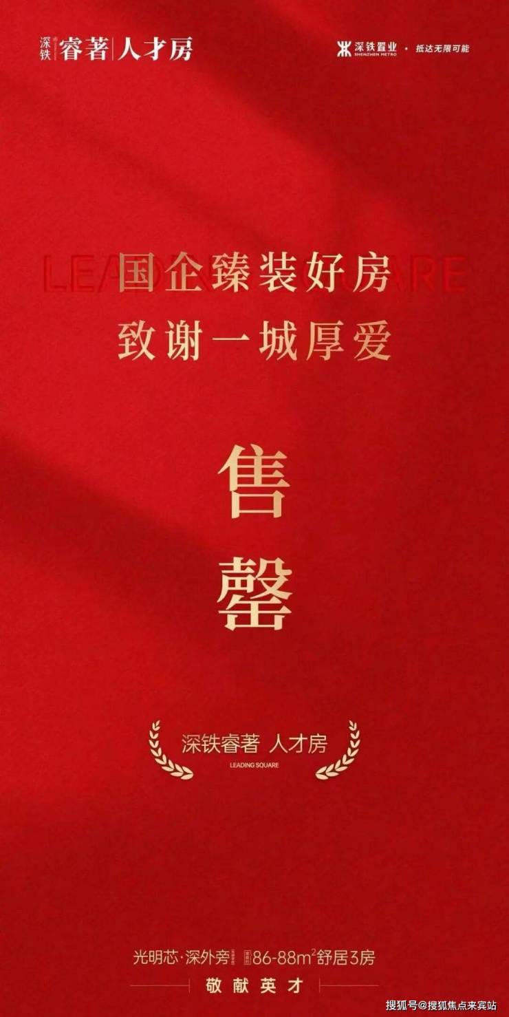 深铁睿著广场是招拍挂地块,2021年11月深铁拍下,商品房限价4.53万元/㎡,人才房毛坯限价2.71万元/㎡,加精装后估计价格到2.9万元/㎡。