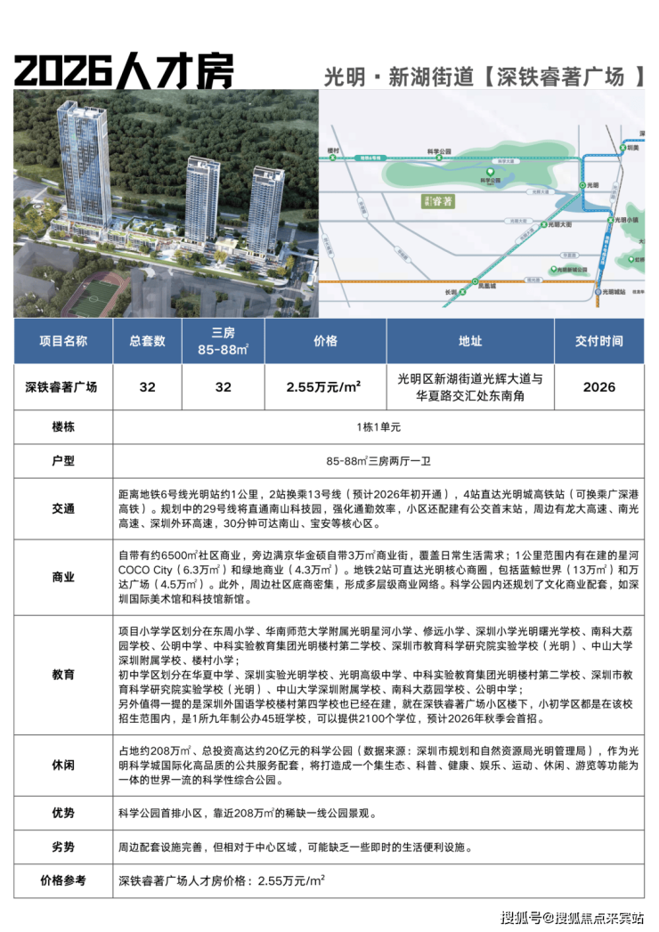 光明的人才房深铁睿著广场,科学公园头牌物业小区,32套人才房日光。