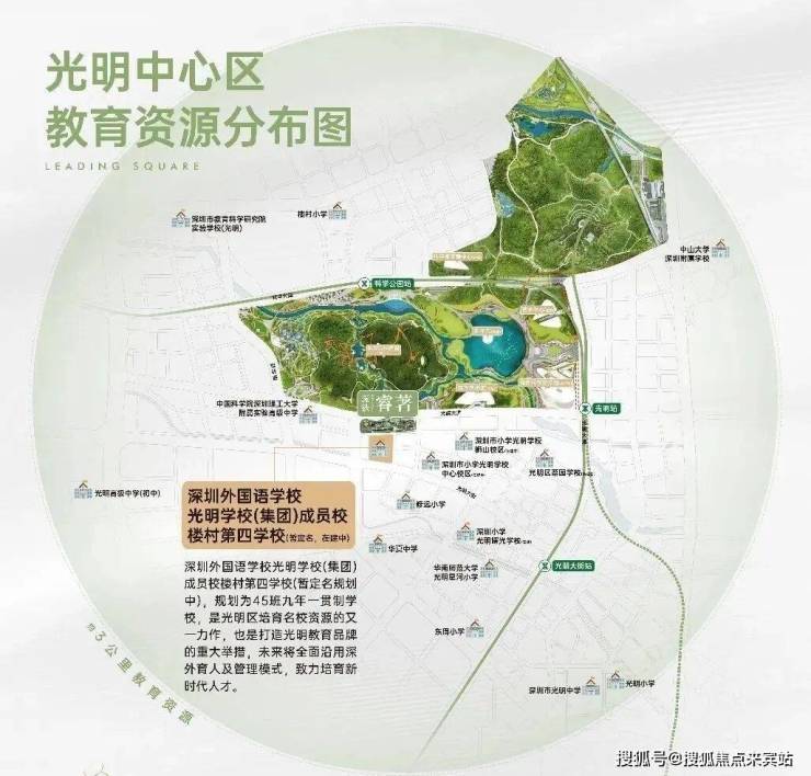 <教育>:项目小学学区划分在东周小学、华南师范大学附属光明星河小学、修远小学、深圳小学光明曙光学校、南科大荔园学校、公明中学、中科实验教育集团光明楼村第二学校、深圳市教育科学研究院实验学校(光明)、中山大学深圳附属学校、楼村小学;