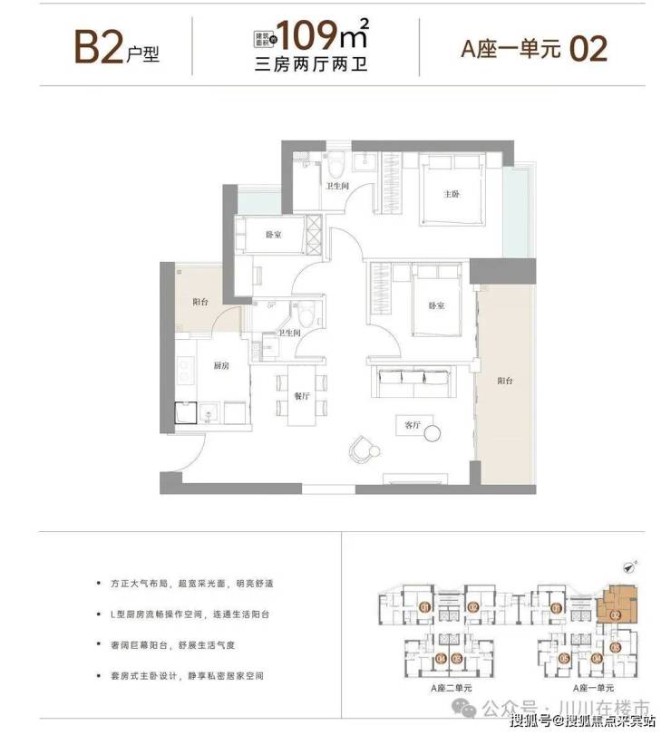户型面积布局A80平两房两厅一卫设计的是竖厅双龙抱珠格局,客厅3.2米开间,三开间朝南,一字型厨房,还带1个生活阳台,卫生间三段式分离设计,阳台东南朝向。户型面积布局B195平三房两厅一卫设计的是竖厅格局,客厅3.4米开间,LDKB一体化,动静分区,L型厨房,带1个生活阳台,卫生间三段式分离设计,阳台东南朝向。户型面积布局B2109平三房两厅两卫设计的是竖厅格局,客厅3.5米开间,LDKB一体化,动静分区,客厅连接次卧出巨幕大阳台,L型厨房,带1个生活阳台,卫生间干湿分离,阳台东北朝向。户型面积布局B3116平三房两厅两卫设计的是竖厅格局,客厅3.5米开间,客餐厅一体化,主卧东南向,客厅连接次卧出巨幕大阳台,L型厨房,带1个生活阳台,公卫三段式分离设计,阳台东北朝向。户型面积布局B5125平三房两厅两卫设计的是竖厅格局,客厅4米开间,动静分区,三开间朝南,客厅连接次卧出巨幕大阳台,厨房带1个生活阳台,公卫三段式分离设计,阳台东南朝向。户型面积布局B4127平三房两厅两卫设计的是竖厅格局,客厅4米开间,南北通透双阳台,动静分区,客厅连接次卧出巨幕大阳台,L型厨房,卫生间干湿分离,大阳台主朝西北向。