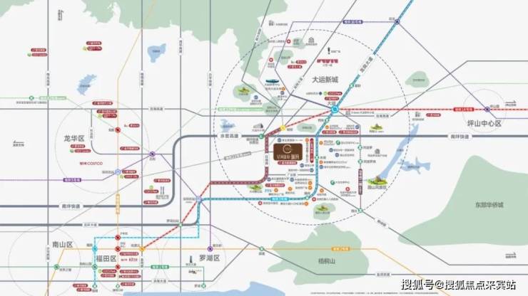 河盛境3期,位于深圳市龙岗区园山街道,地处大运板块核心区域,毗邻地铁3号线永湖站及14号线坳背站,是双地铁覆盖的TOD综合体项目。项目周边交通网络发达,14号线可1站直达大运枢纽,5站至罗湖、6站至福田,规划中的21号线和33号线将进一步强化与坂田、南山及机场东的快速连接,形成覆盖全城的“五纵四横”路网结构(水官高速、龙岗大道等),便捷通达深圳核心区域。