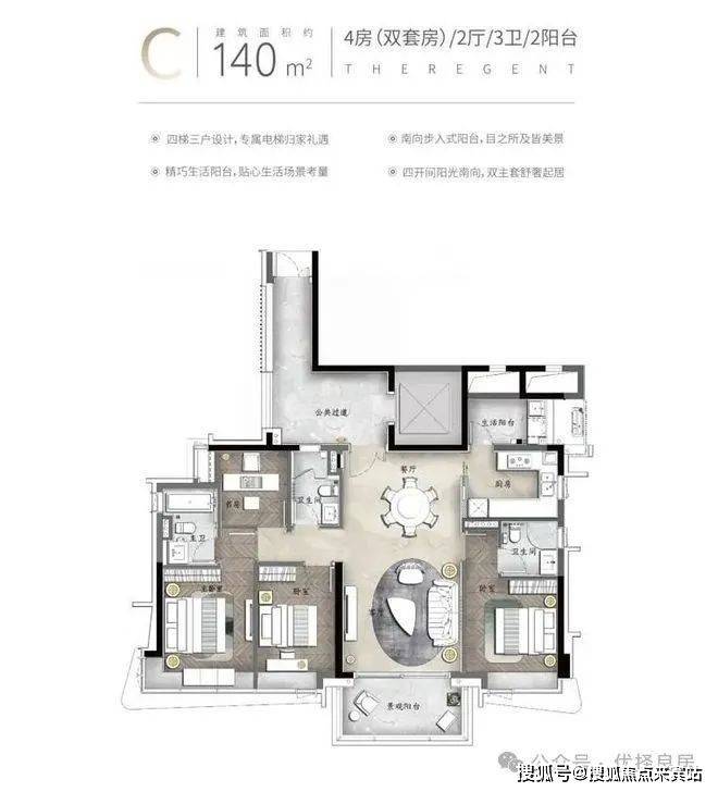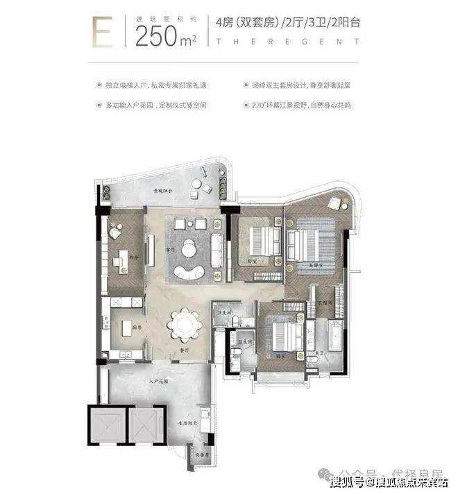 面积约140-250㎡环幕临江大平层,坐拥江景第一排,眺望小蛮腰,享500米宽阔无遮挡江景视野,并邀请三大全球知名设计大师倾力打造,并配备12大国际一线品牌交标,专梯专户四房双套房设计,世界灵感前沿作品礼献广州!