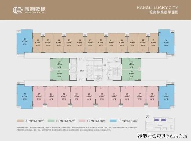 ① 首发乾寓户型: 北侧28、53㎡;南侧38、53㎡;东、西两侧26㎡,5梯30户。项目将于9月开盘;2026年精装交楼。