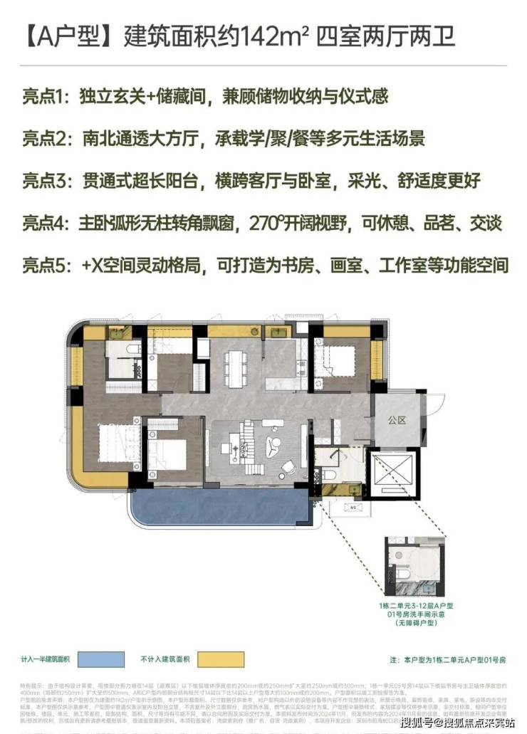 房源方面,项目总计 485 套,为纯住宅无人才房社区,采用精装修交付标准,批地时间为 2024 年 3 月;户型涵盖建面约 96㎡、111㎡、122㎡、142㎡ 的 3-4 房,得房率约 92-100%,且为新规后首批入市项目,性价比优势突出。