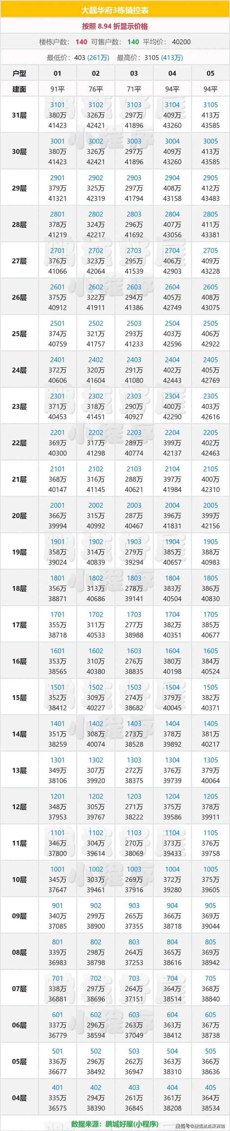 龙岗区布吉板块【大靓华府】3栋加推!加推71㎡2房1卫,76㎡3房1卫,91-95㎡3房2卫,共140套房源。