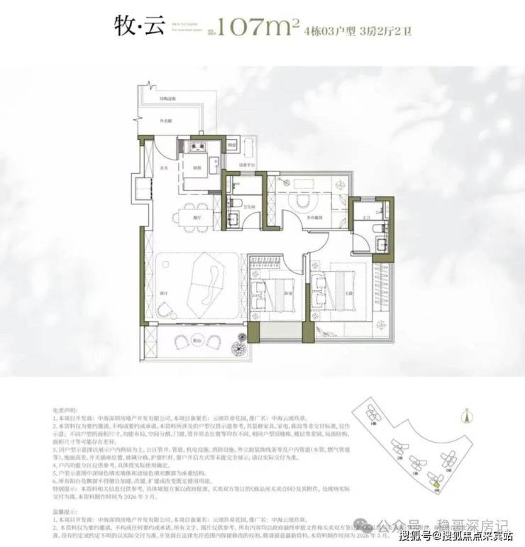 龙华梅林关,中海云颂玖章花园计划在2026年6月份取证入市,本次将会首推4/5栋住宅,共206套房源,面积有107㎡的3房2卫,128-143㎡的4房2卫户型。