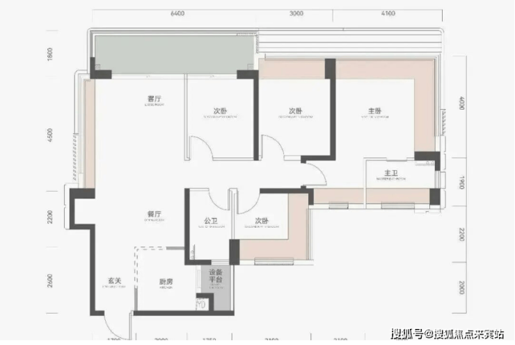 建面约114㎡ 4房2厅2卫 2-30层