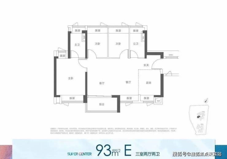93平三房2卫