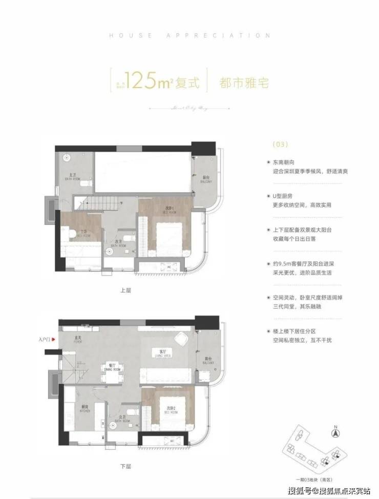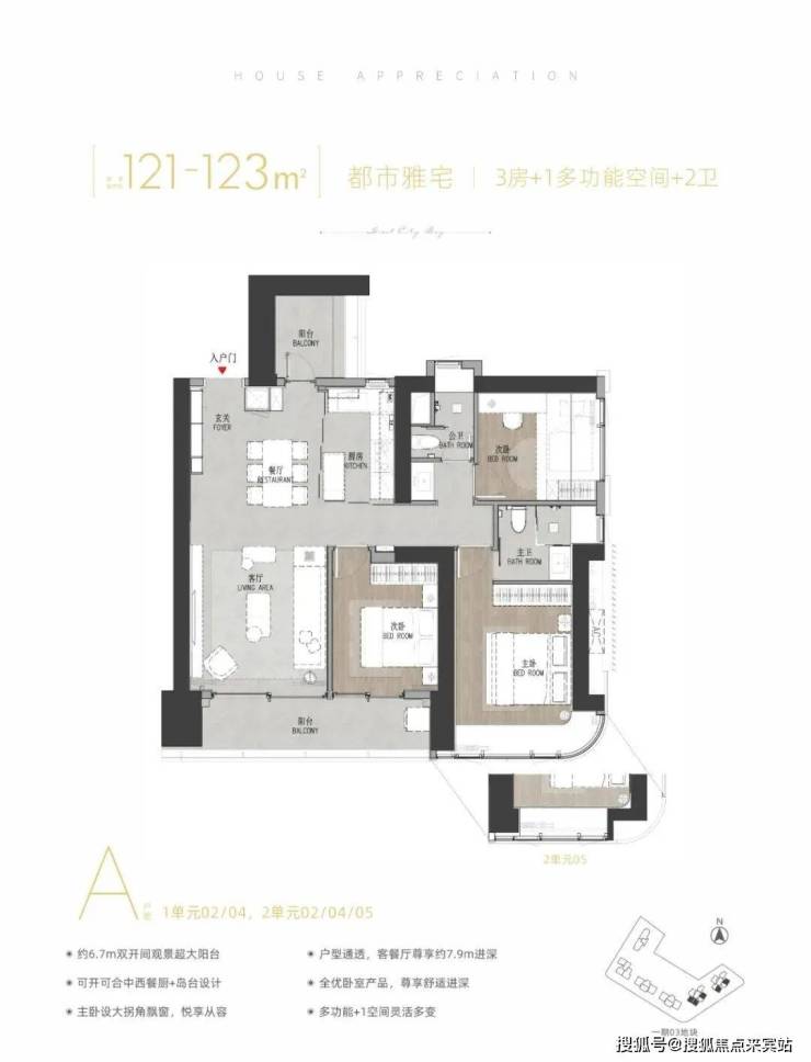主要户型就是约125平左右的产品,部分户型楼间距更大,景观视野会更好,既有经典传统的3房+1多功能空间格局的方正三房两卫,也有餐客厅同宽、卧室在两侧的双龙抱珠的户型格局。