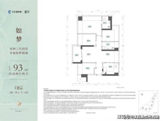 1️⃣约93㎡4房2厅2卫: