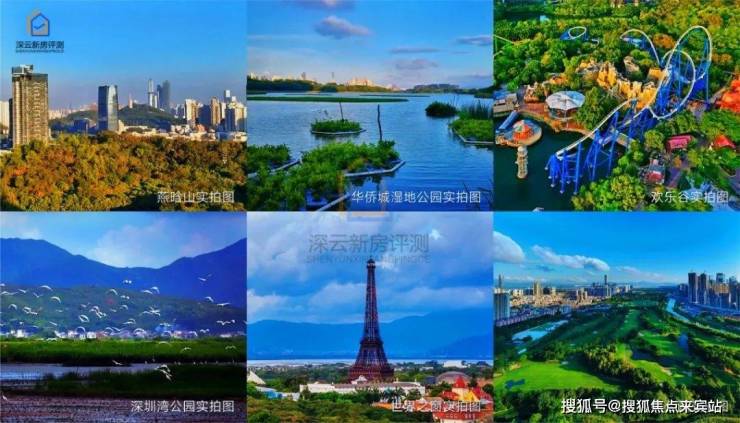 约3.4平方公里中央公园(规划中,包含大沙河公园、名商高尔夫、大沙河高尔夫)、约24万㎡燕晗山郊野公园、约 68.5万㎡华侨城国家湿地公园、约15公里深圳湾滨海长廊与华侨城三大主题公园(欢乐谷、世界之窗、锦绣中华民俗文化村)共同组成深圳超级公园带,每一次呼吸与远眺,都有来自国家级生态保护区的气息。