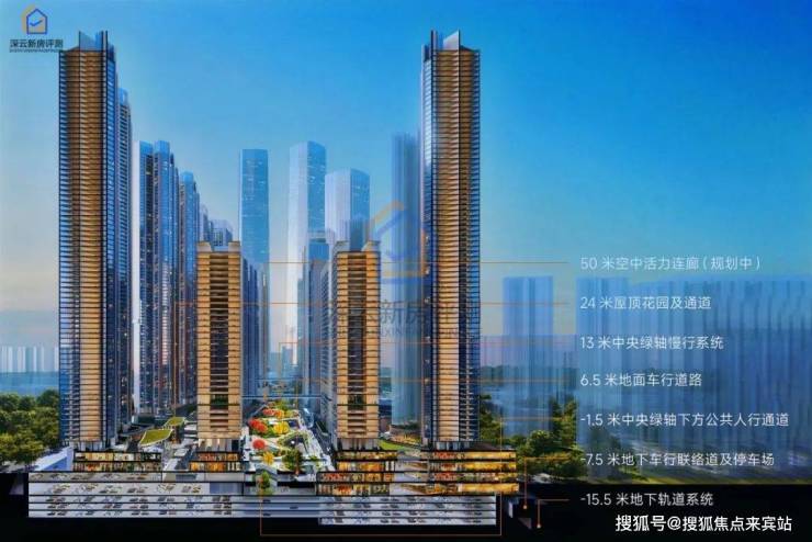 内部交通——前瞻规划,地上、地下五重立体交通系统,分层互联、人车分流;深圳首个在住宅社区打造地下车行环道系统,地下环道串联业主车库,对外直连城市主干道,提供极大出行便利。