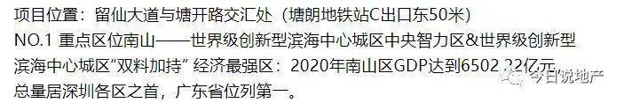 中央智力区&世界级创新型滨海中心城区“双料加持” 经济最强区:2020年南山区GDP达到6502.22亿元,总量居深圳各区之首,广东省位列第一。