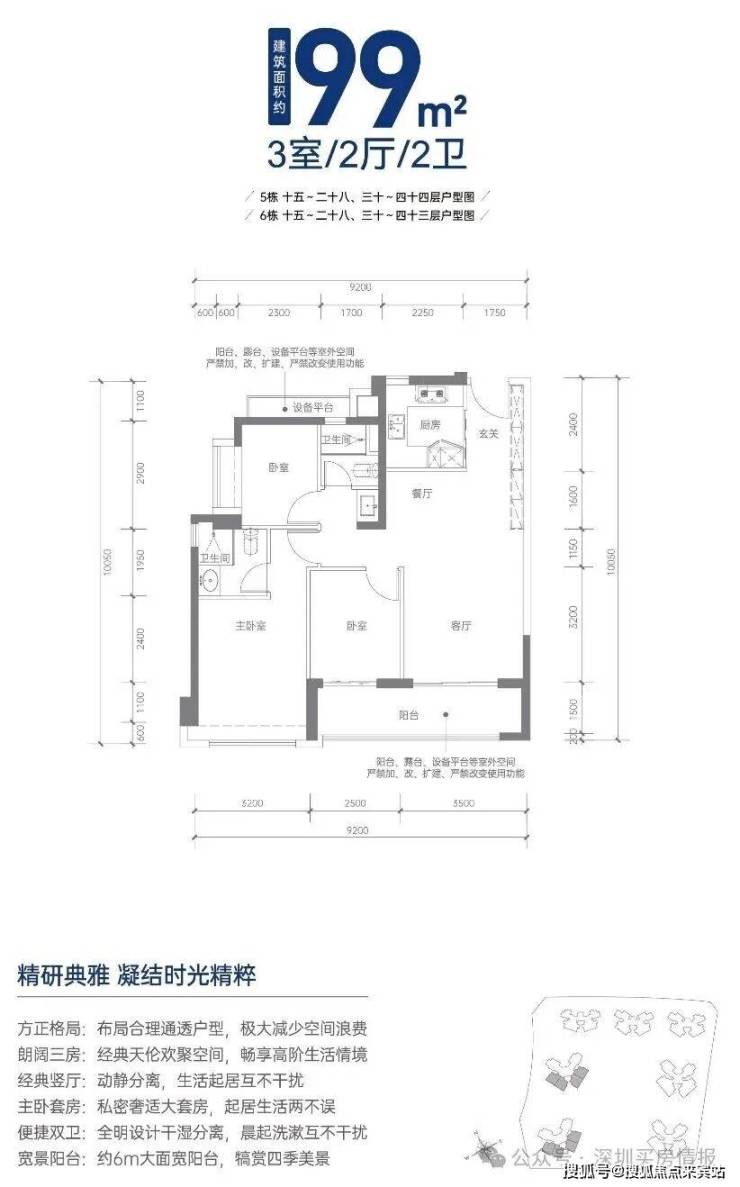 99㎡的3房2厅2卫,折后总价592-726万/套,单价5.98-7.34万/㎡。