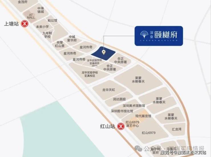 深业颐樾府位于龙华民治街道民塘路和上塘路交汇处南面的红山板块,