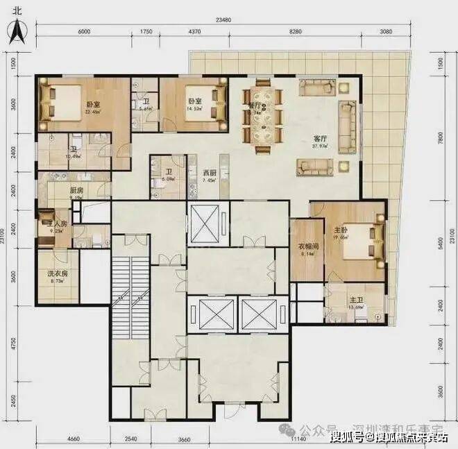 优点:3.45米极限层高,打造完美开阔空间比,主卧通透,双景观面,6米主卧开间,景观浴室,奢侈衣帽间,6米客厅开间,超大餐客厅。