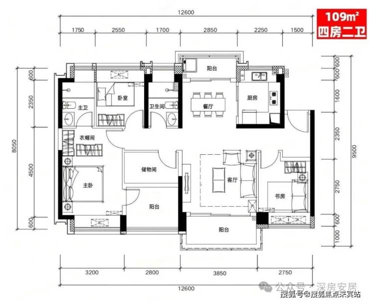 G01户型:109㎡四房二厅二卫